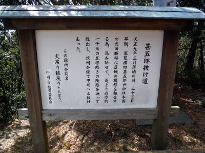 掛川には掛川城なるものが駅前にあるそうですが、 そんなものに興味は無く、新田次郎(横山光輝)の『武田勝頼』が好きな私が行くべきは、 高天神城跡なのでした。
